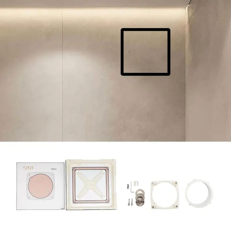 This product is a concealed mounting system that allows you to integrate a standard axial or duct fan discreetly into your bathroom or toilet space.